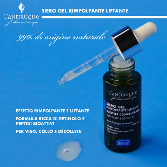 Helan L'Antirughe - Siero Viso Collo Décolleté Antirughe Liftante Gel Skincare Boost Concentrato Rimpolpa con Retinolo Viso e Peptidi Bioattivi Antiage Skin Care Stimola Collagene contro Luce Blu 30ml