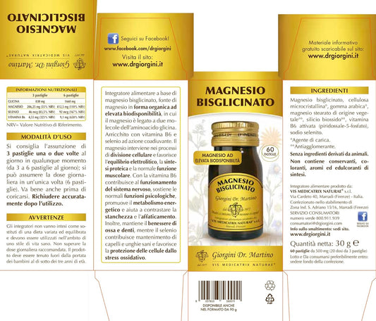 MAGNESIO BISGLICINATO Pastiglie - 30 g (Magnesio ad elevata biodisponibilità, con vitamina B6 e Selenio)