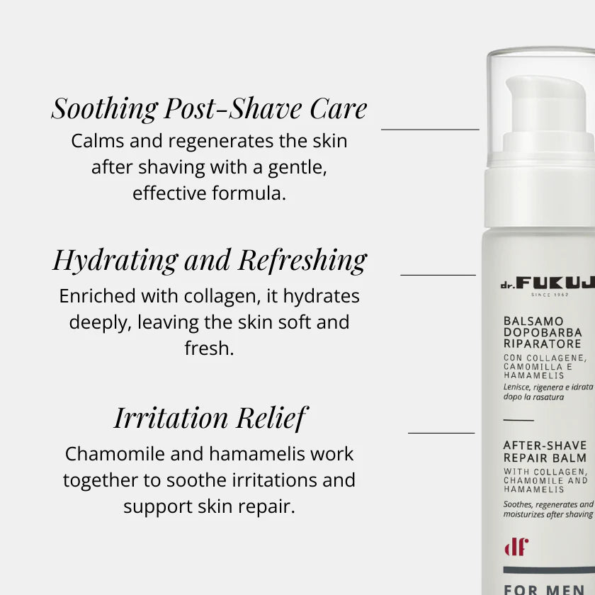 Dopobarba ideale per calmare e rigenerare la pelle dopo la rasatura, grazie a una formula arricchita con collagene, camomilla e hamamelis. Questi ingredienti lavorano in sinergia per lenire le irritazioni, favorire la rigenerazione cutanea e lasciare la pelle morbida, idratata e fresca. Perfetto per una cura quotidiana delicata e rigenerante