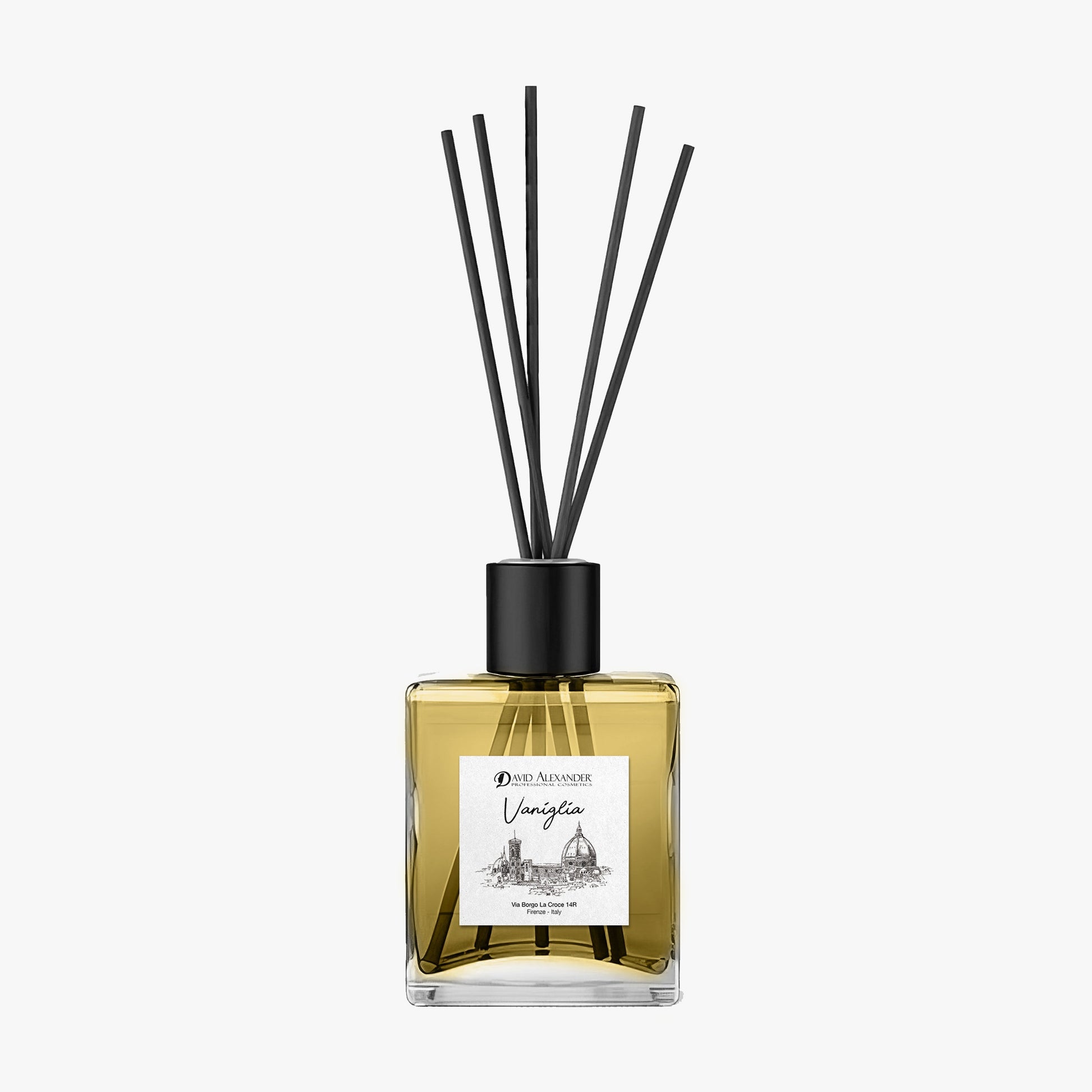 - Formato: 100 ml con bastoncini diffusori in fibra nera
